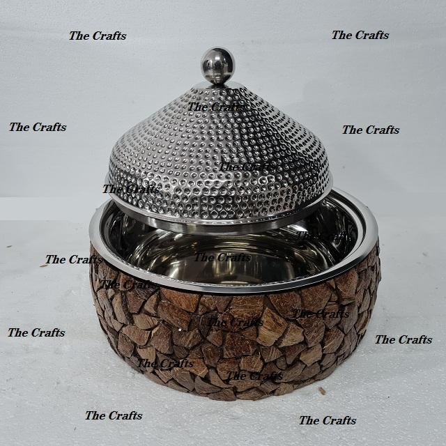 Marmite en bois et en acier au design attrayant avec coquille de noix de coco pour la maison, l'hôtel et le restaurant