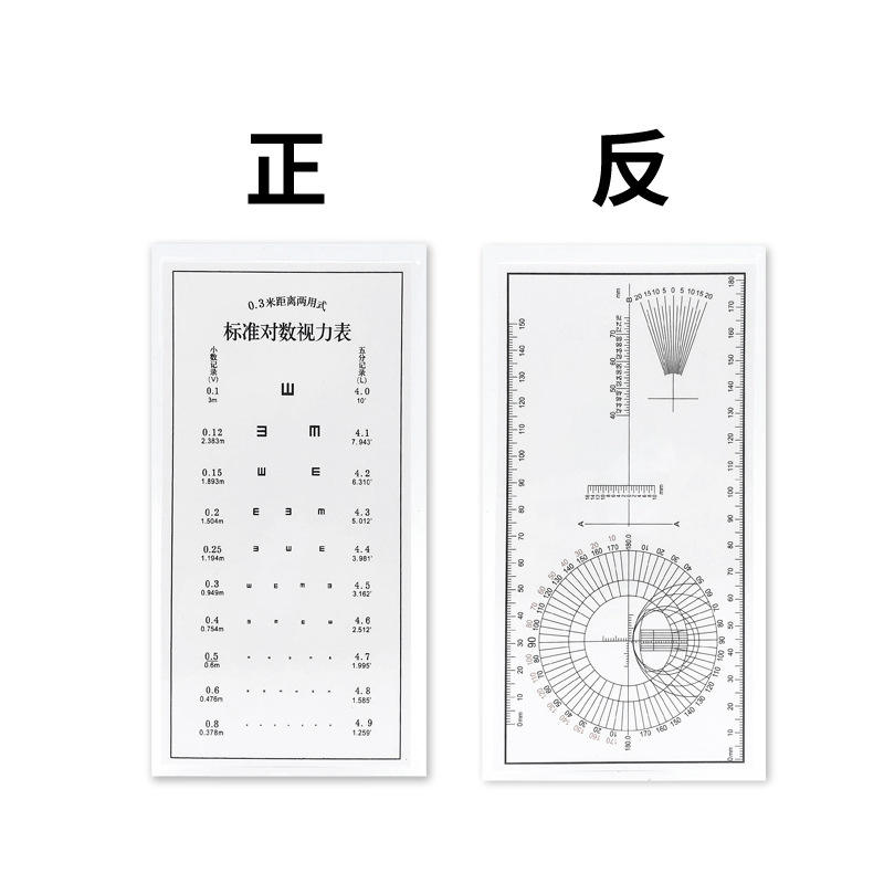 Tableau optométrique logarithmique standard, distance de 0,3 m, double face, film plastique enduit, carte de test de la vue pour l'examen de la vision de près