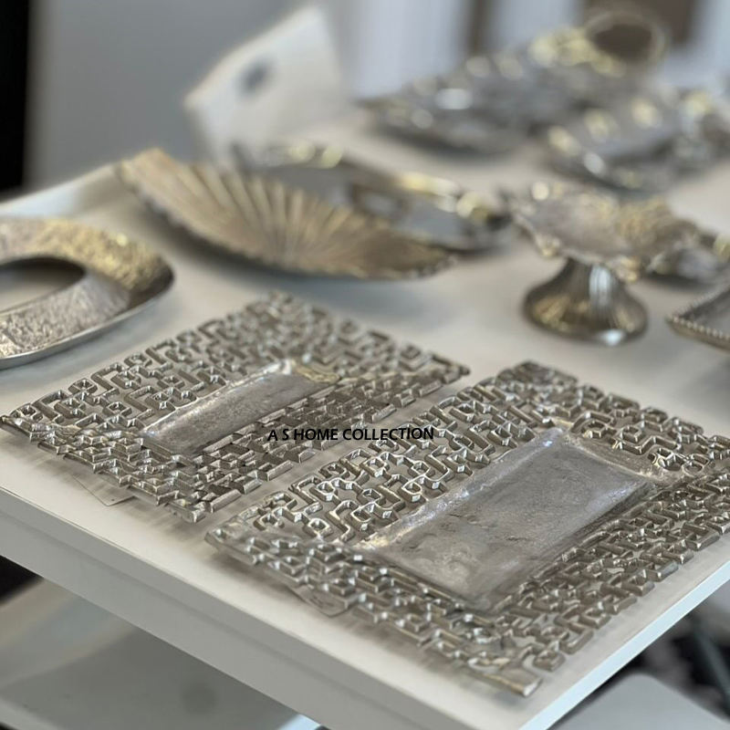 Look Standard Argent Plaqué Fantastique Bordure Conception Articles De Fête Plateau De Service En Aluminium Métal Décor À La Maison Meilleur Prix En Gros