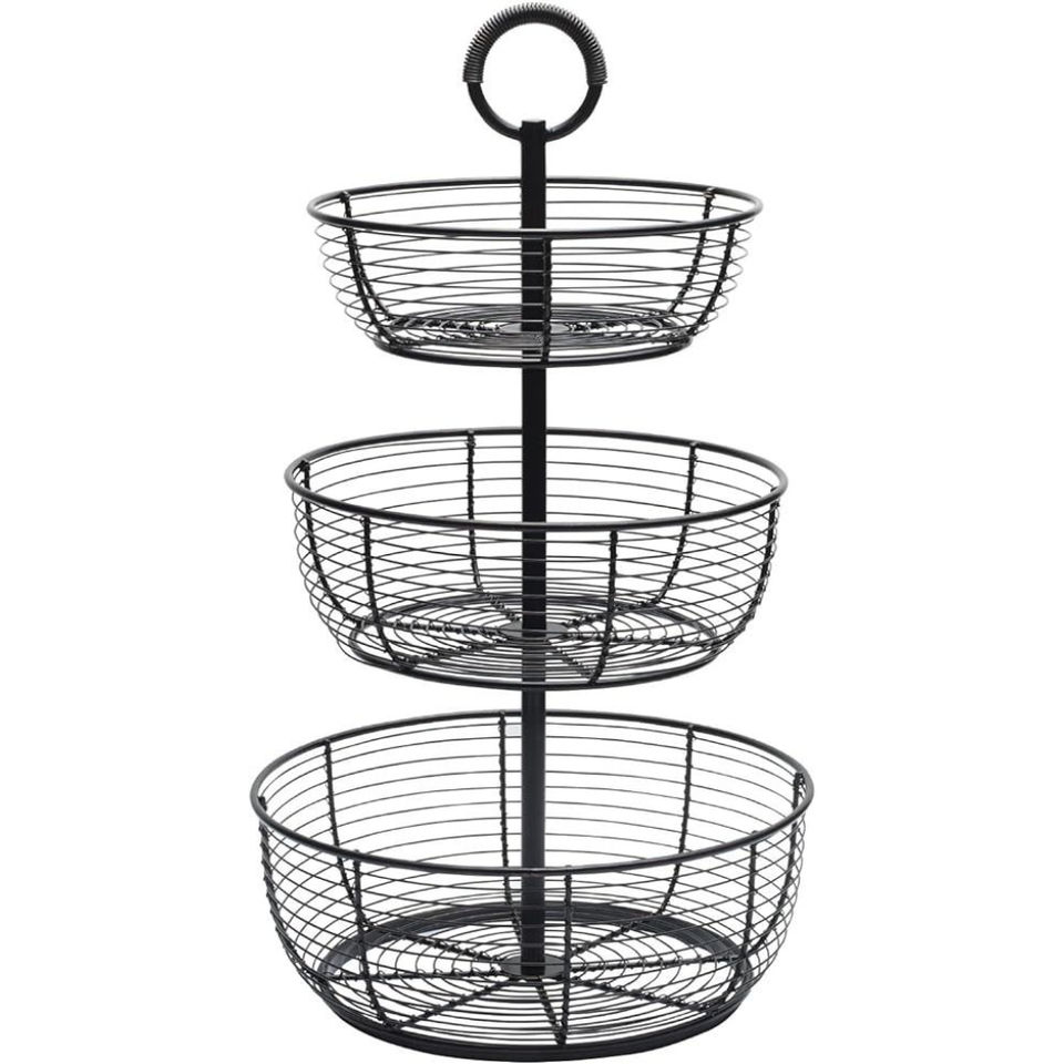 Panier de rangement rond en métal noir décoratif de qualité standard avec poignées pour la décoration du salon et de la cuisine