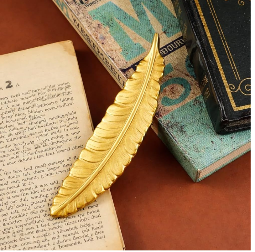 Marque-page en métal de qualité standard, forme plume, en laiton, modèle Coran, plaqué or