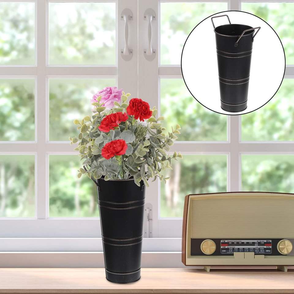 Jardinière de fleurs en métal de qualité Standard pour entrée salon balcon décor couleur noire jardinière de fleurs avec poignée