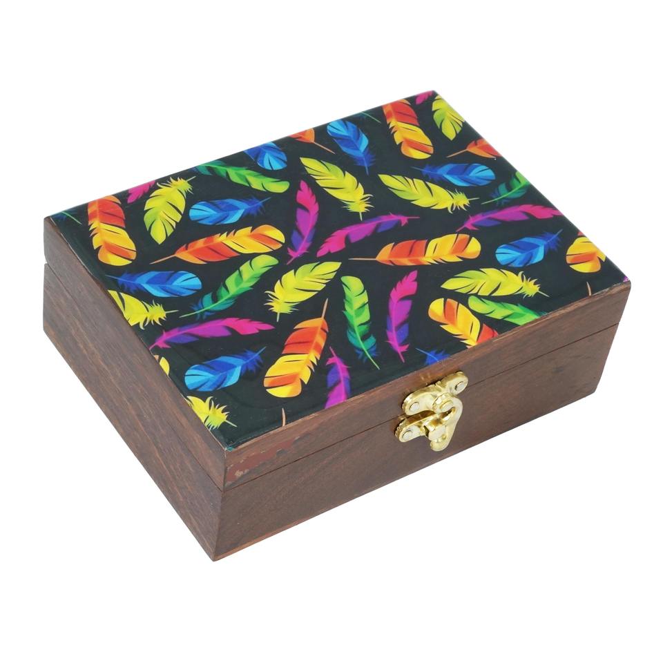 Boîte en bois imprimée de taille standard, boîte à bijoux colorée, boîte de rangement en bois imprimée pour cuisine et salle à manger, vente en gros