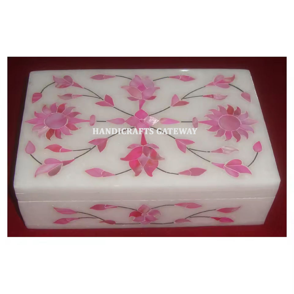 Taille standard et boîte de rangement de bijoux en incrustation rose de produit en marbre naturel le plus vendu boîte à bijoux en incrustation de marbre nacre