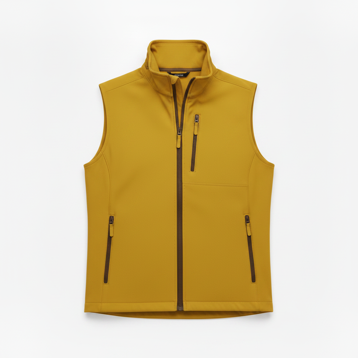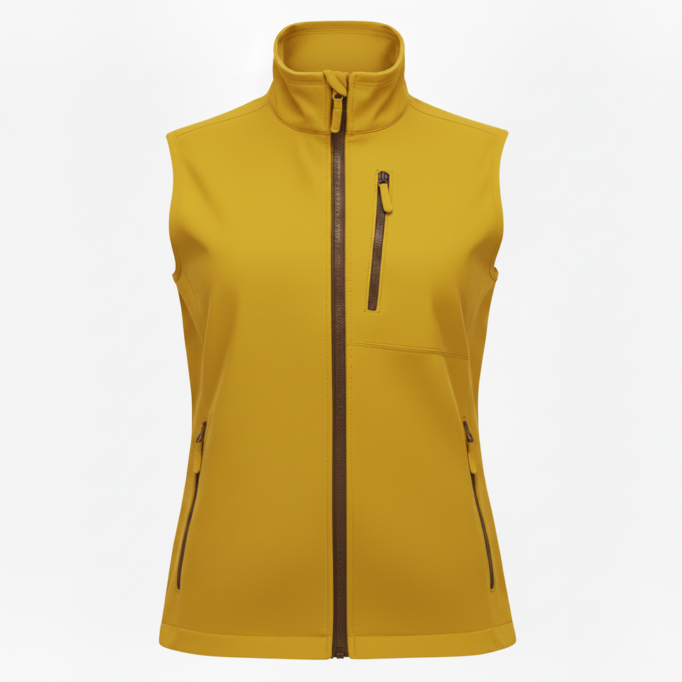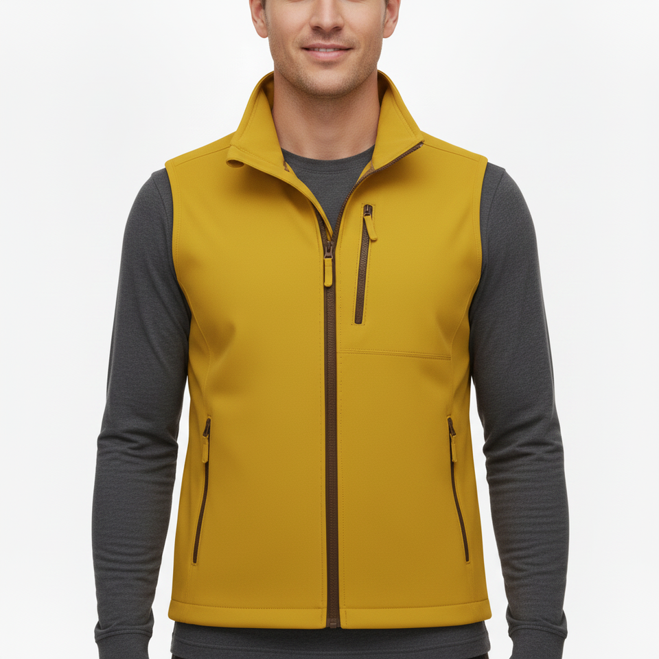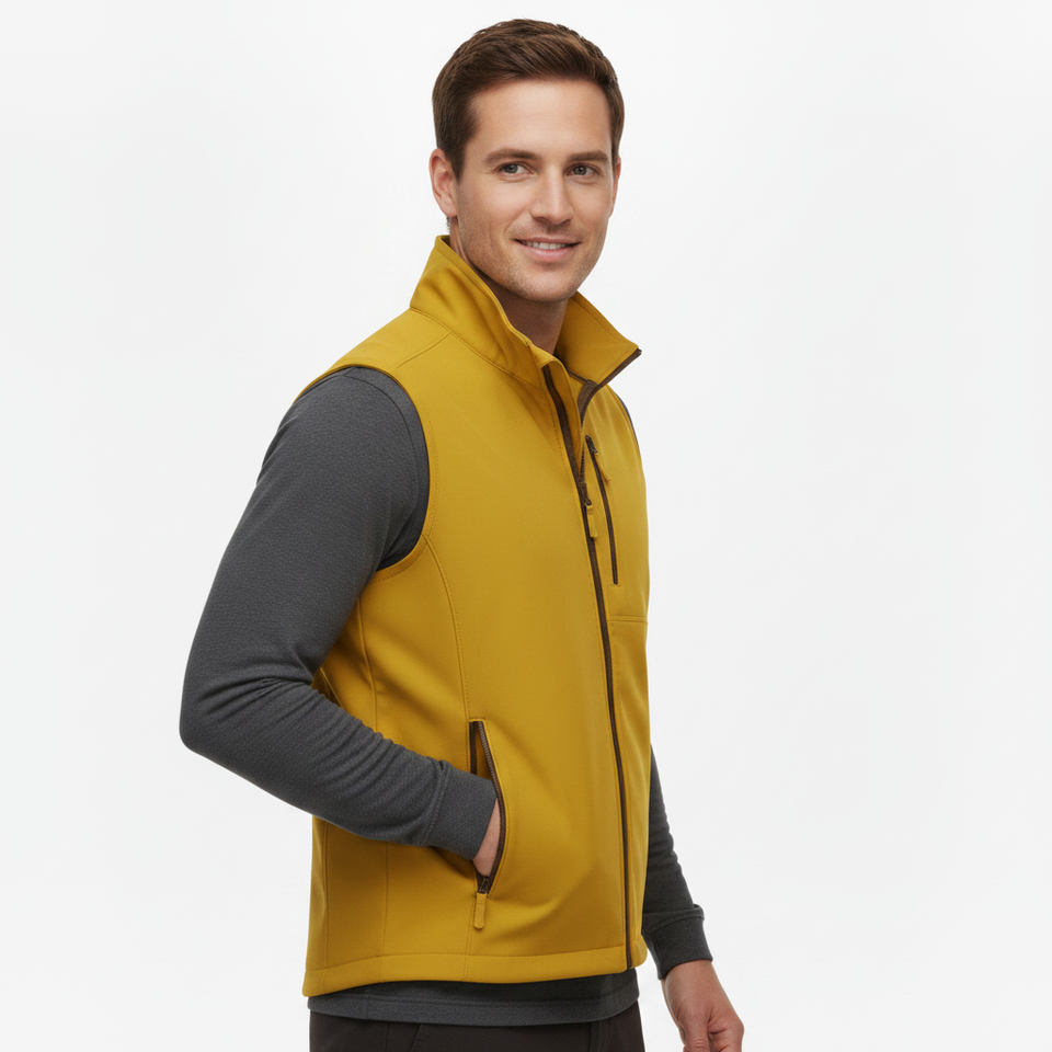 Gilet softshell standard unisexe coupe ajustée coupe-vent respirant avec fermeture éclair frontale col montant sans manches style décontracté pour la course