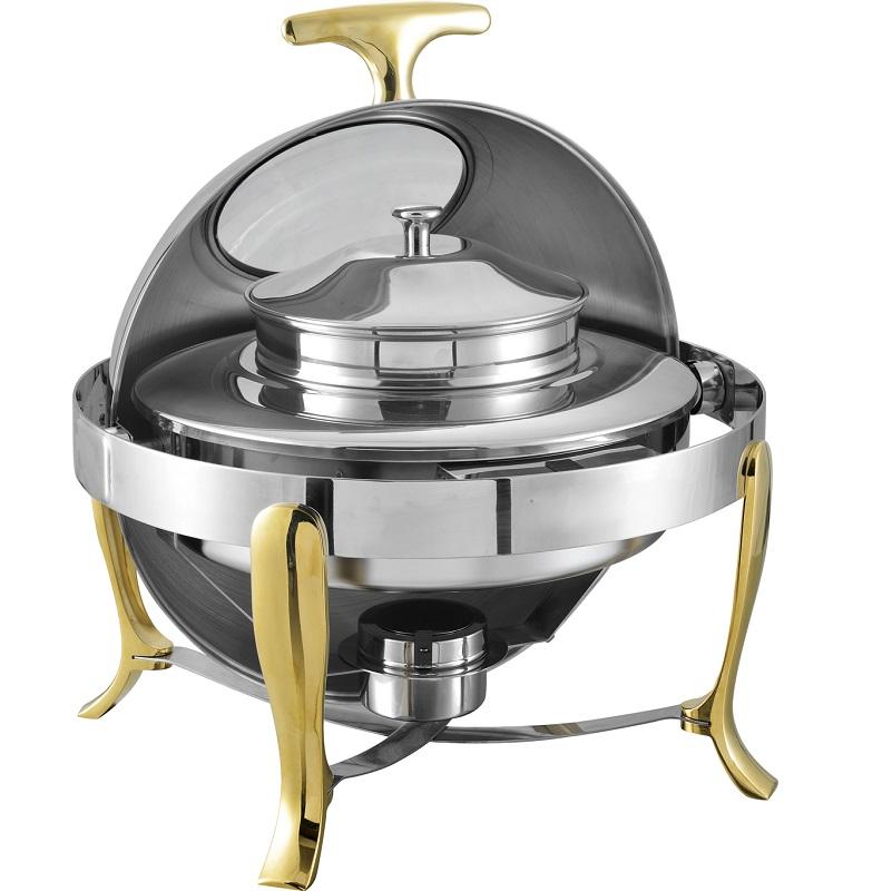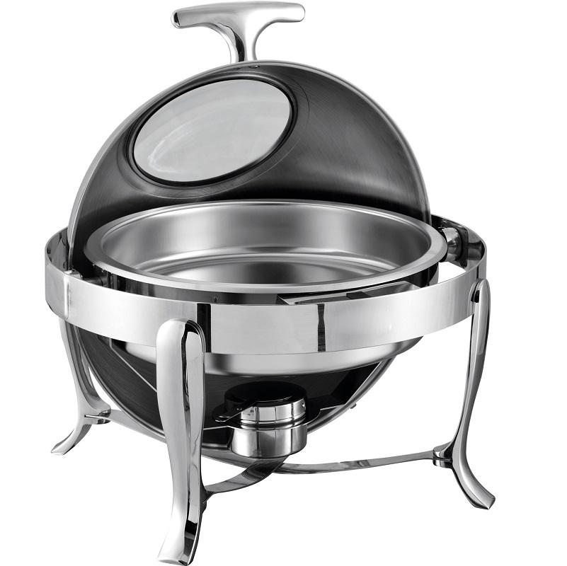 stainless steel round food warmer roll top glass lid chafing dishitem