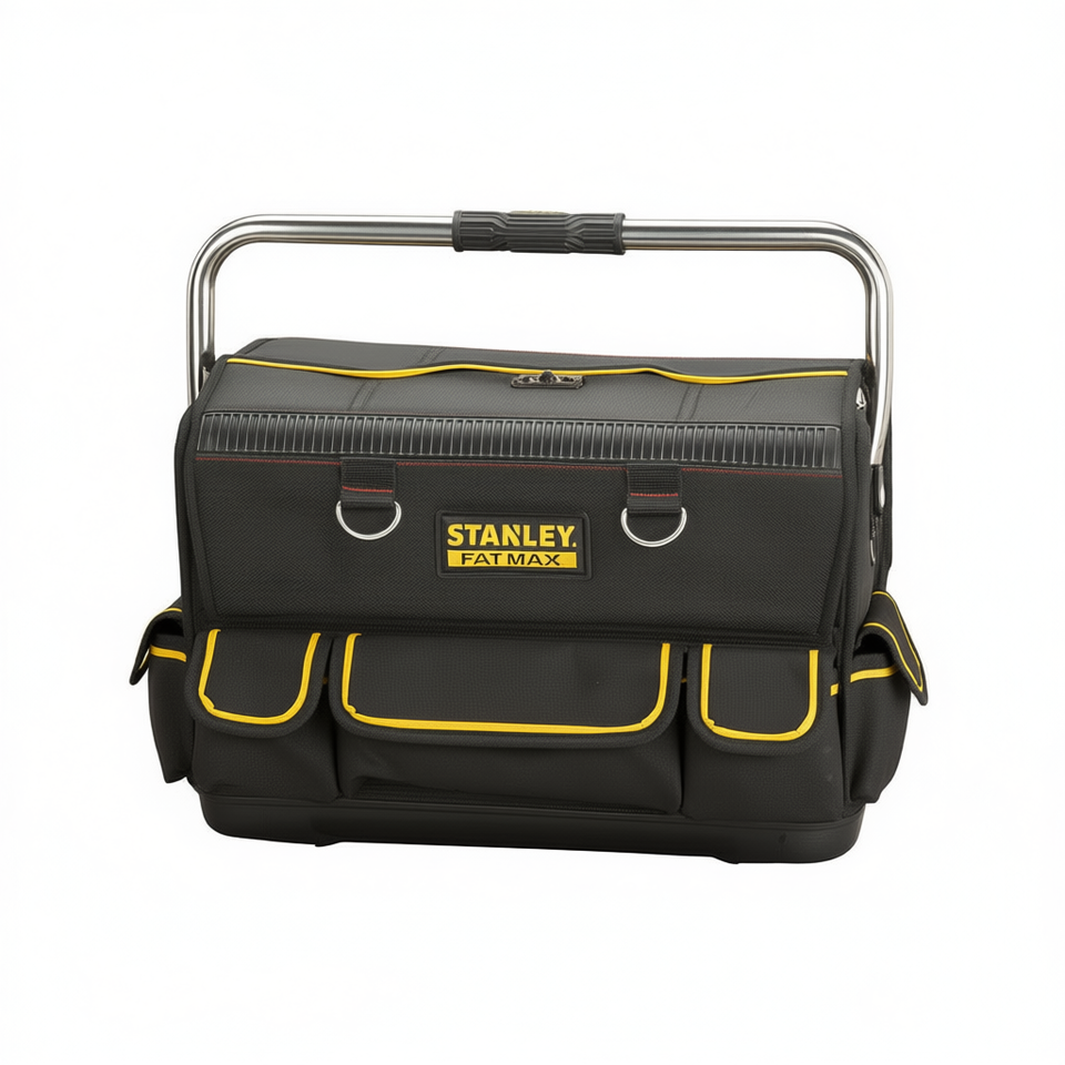Sac à outils Stanley Fatmax pour plombier, 16 pouces, robuste, avec poignée en métal et plusieurs poches pour un rangement organisé