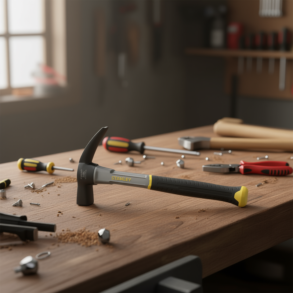 Marteau de charpentier de type français Stanley, 16 oz, tête en acier avec lance-clous magnétique et poignée amortissante