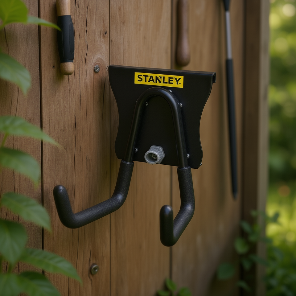 Support mural court pour outils de jardin en métal thermolaqué noir Stanley