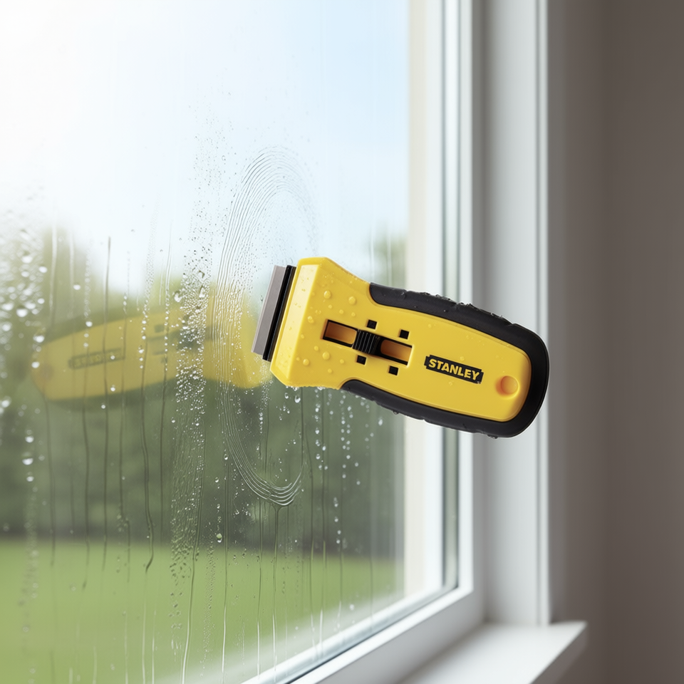 Grattoir pour fenêtres Stanley avec 5 lames de rechange, poignée souple de sécurité, ventouse, ensemble de 4 pièces