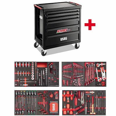 Armoire à outils Star à 6 tiroirs avec ensemble d'outils de 180 pièces, établi de rangement roulant pour garage, rouge et noir