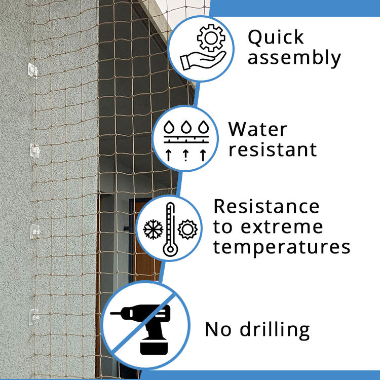 Filet de protection pour balcon et fenêtre Star Barriere, filet anti-chats et anti-pigeons, ensemble complet d'assemblage, polycarbonate transparent