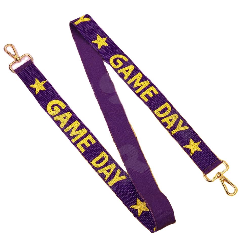 Star Game day Sangles de sac de perles de rocaille en or blanc personnalisées 'Hook Em Horns' Accessoire à la mode Sangle de sac à main perlée