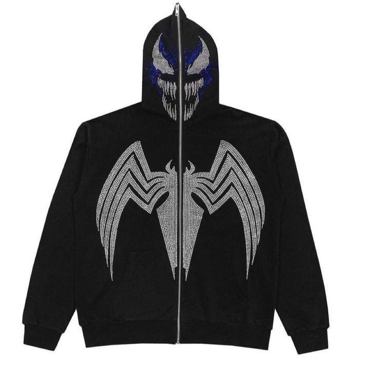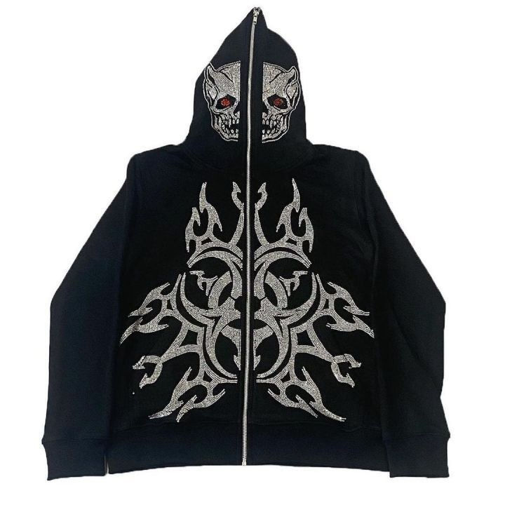 Sweat-shirts à capuche zippés unisexes décontractés pour femmes et hommes, avec strass étoiles et poches, style Y2K