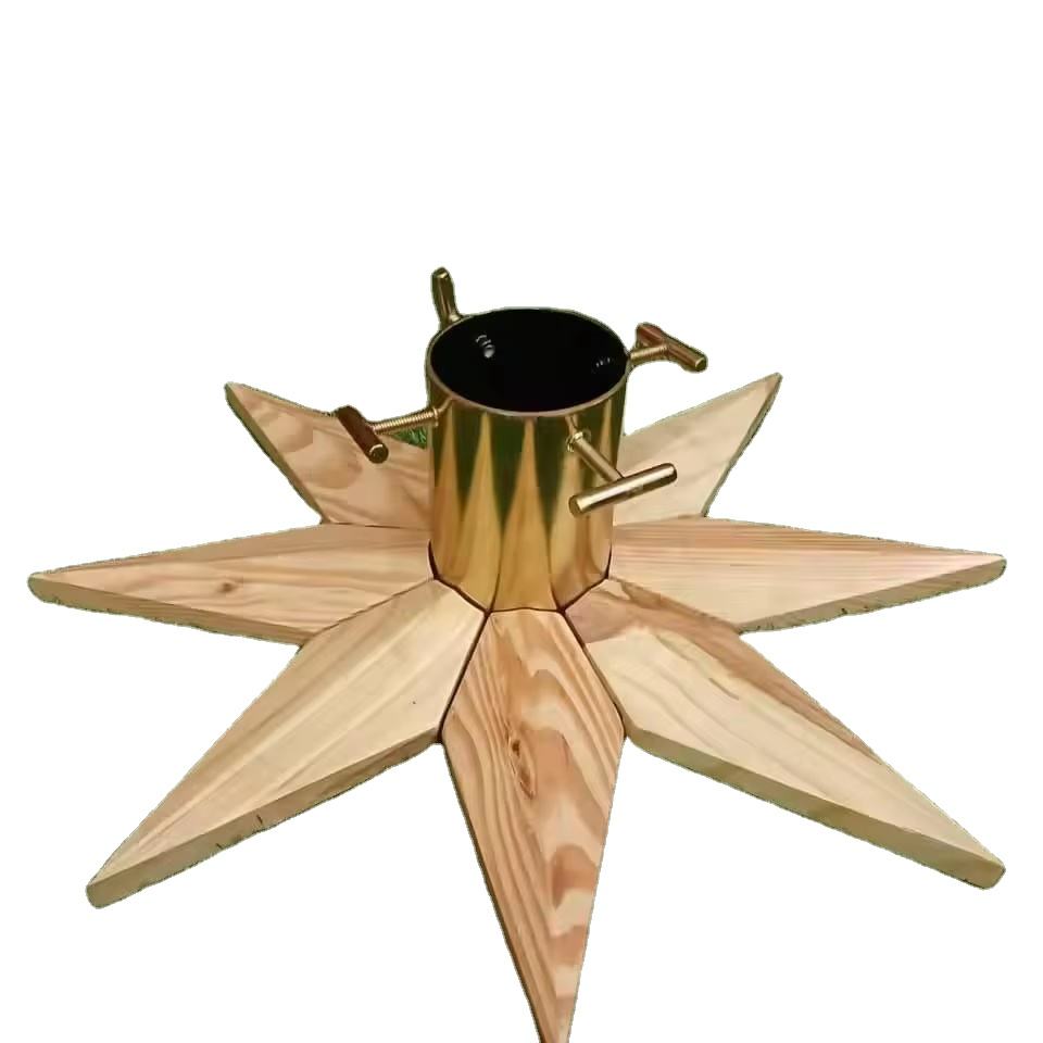 Support d'arbre de Noël en forme d'étoile pour décoration intérieure, utilisation au sol, support d'arbre de Noël en bois avec collier métallique