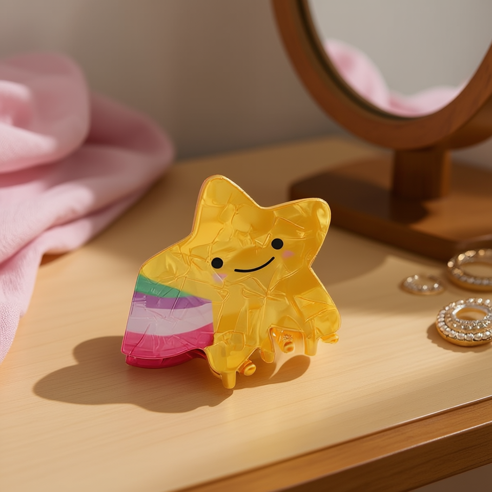 Pince à cheveux en forme d'étoile, 12 cm, design de dessin animé en plastique, pour femmes et filles, style décontracté