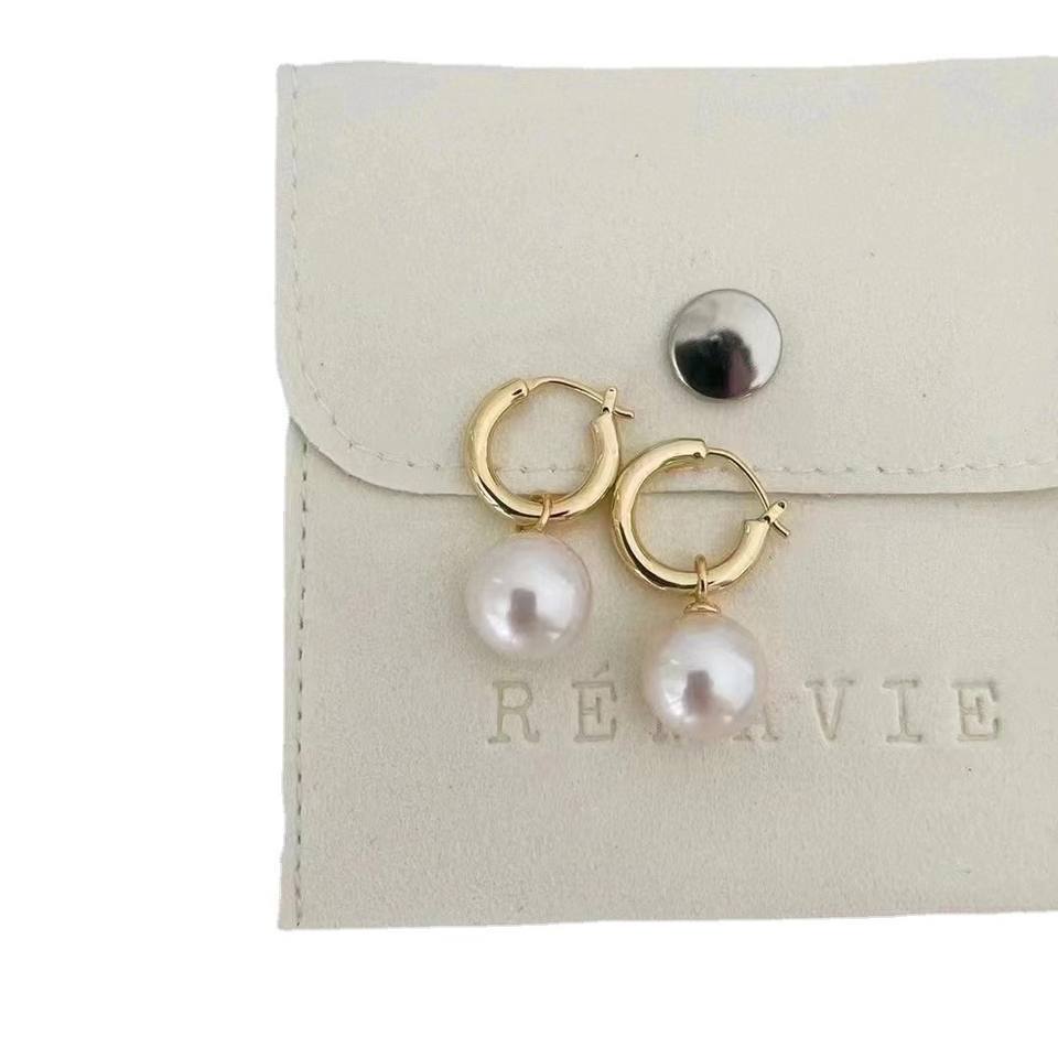 Boucles d'oreilles en perles d'eau douce de style étoile, 10-11 mm, presque circulaires, à forte luminosité, détachables, design rétro français