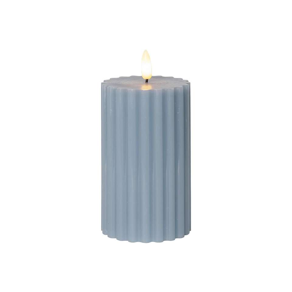 Star Trading LED Wachskerze Flamme Stripe Batterie Timer 15x7,5cm blau