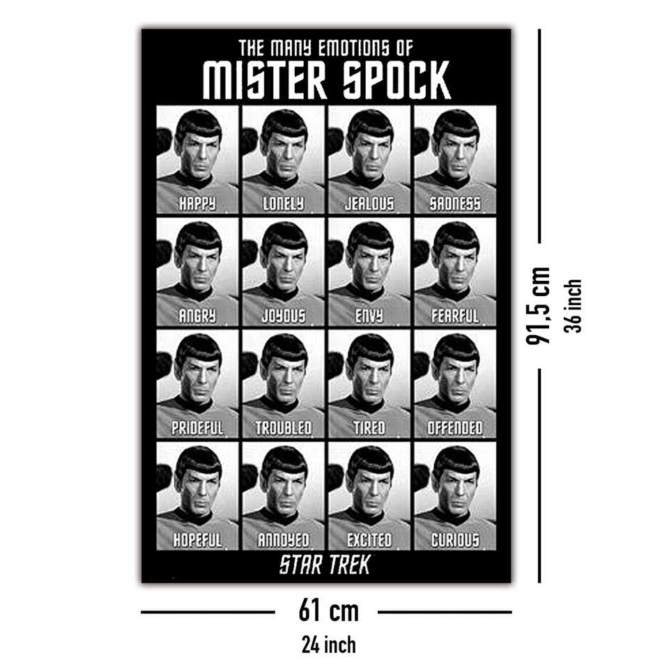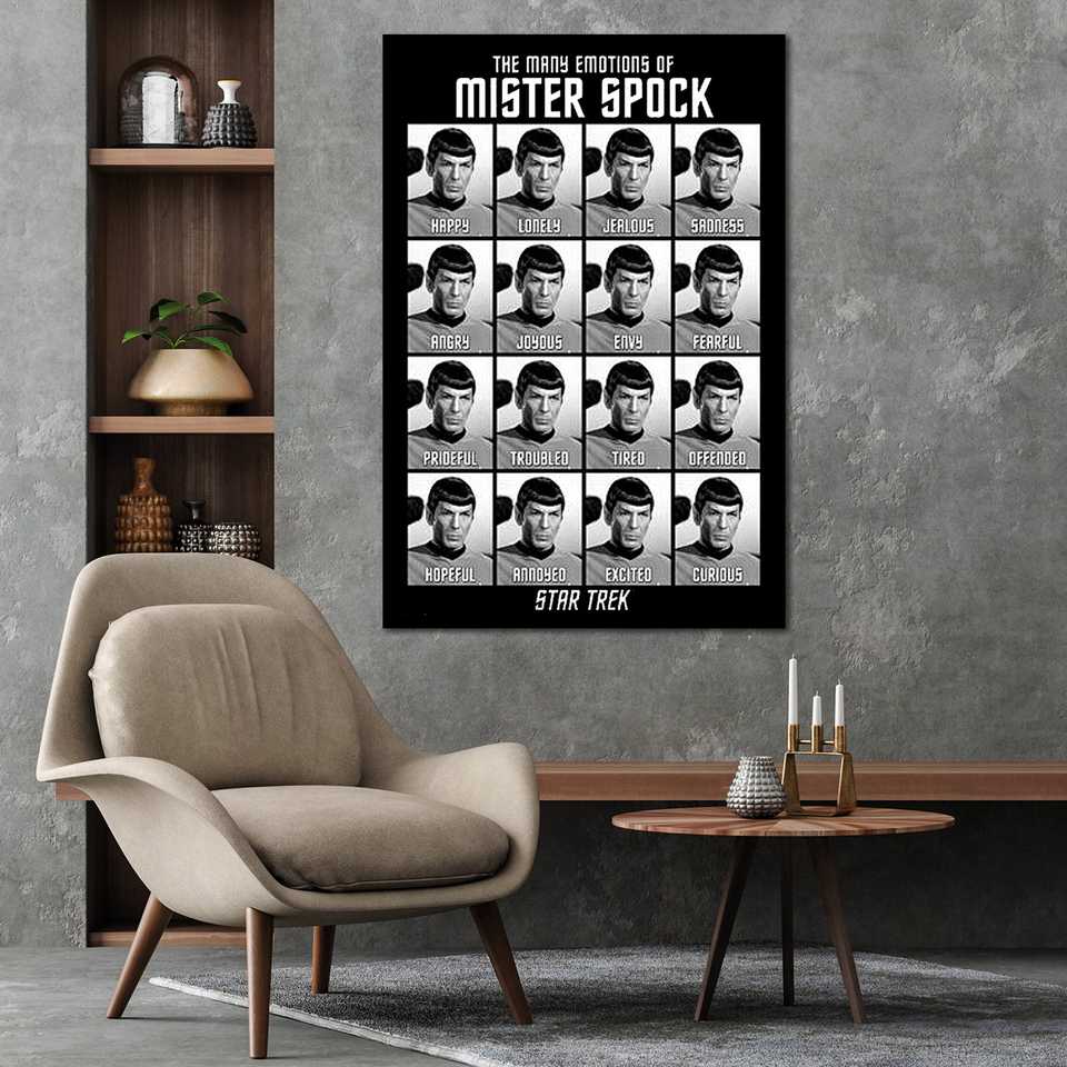 Affiche Star Trek Classics au design moderne, mettant en scène les multiples émotions du commissaire Spock, pour une utilisation murale