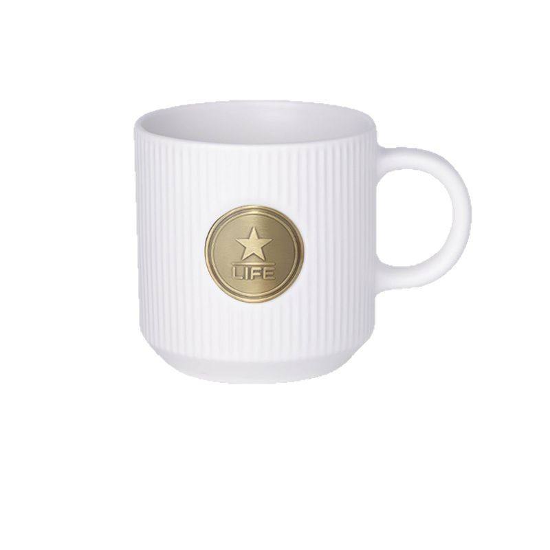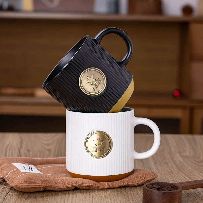Mug en céramique style Starbucks avec logo étoile en laiton, blanc et noir, pour café, thé, cadeau, ensemble individuel