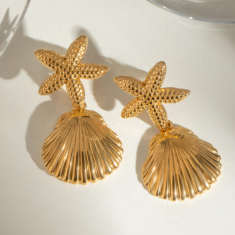 Boucles d'oreilles en forme de coquille d'étoile de mer, en acier inoxydable, couleur or, bijoux de fête à la mode