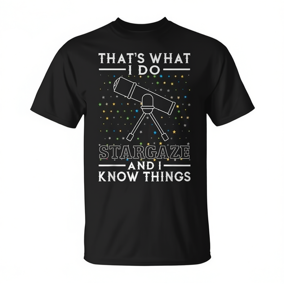 T-shirt Stargaze And I Know Things à manches courtes, col ras du cou, impression numérique, unisexe, pour adultes, amateurs d'astronomie