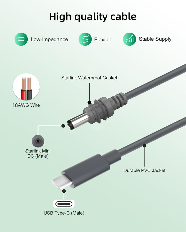 Starlink Mini câble d'alimentation CC Type C à CC Starlink Mini USB C 100W PD Power Bank 18AWG Câble d'extérieur