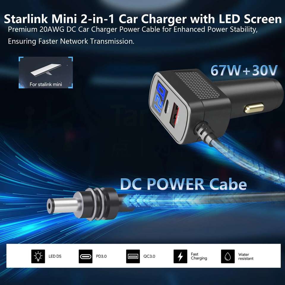 Starlink Mini prise LED Chargeur de voiture Cordon d'alimentation 12V-24V DC Câble avec ports USB-C et USB-A 2M 3M 5M PVC Veste Tresse Blindage