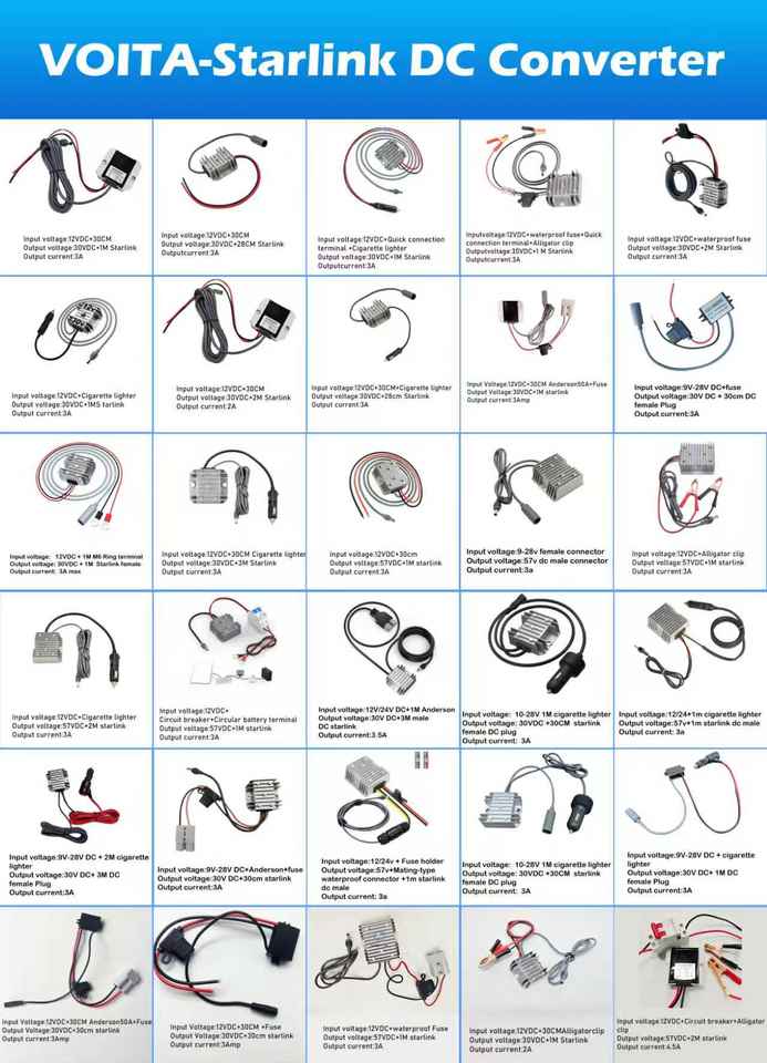 Nom du produit:Convertisseur CC 12 V à 57 V 4,5 A pour routeur Starlink Gen 2/3/4, avec câble CC