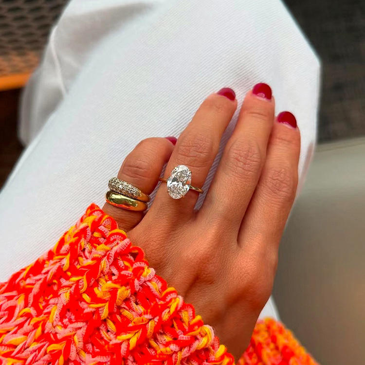 Bague pour femme en laiton plaqué rhodium, avec diamant d'imitation artificiel de grande taille, taille ovale 'œuf de pigeon', style français simple, motif ciel étoilé, Shi Nuo