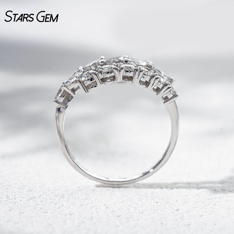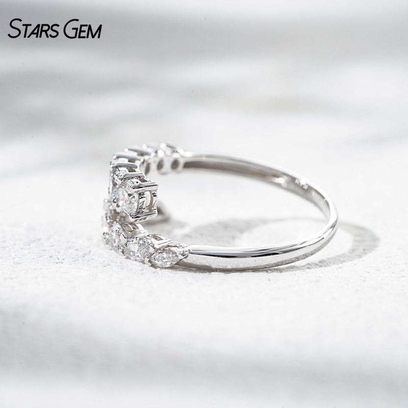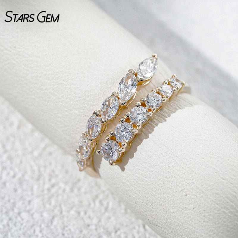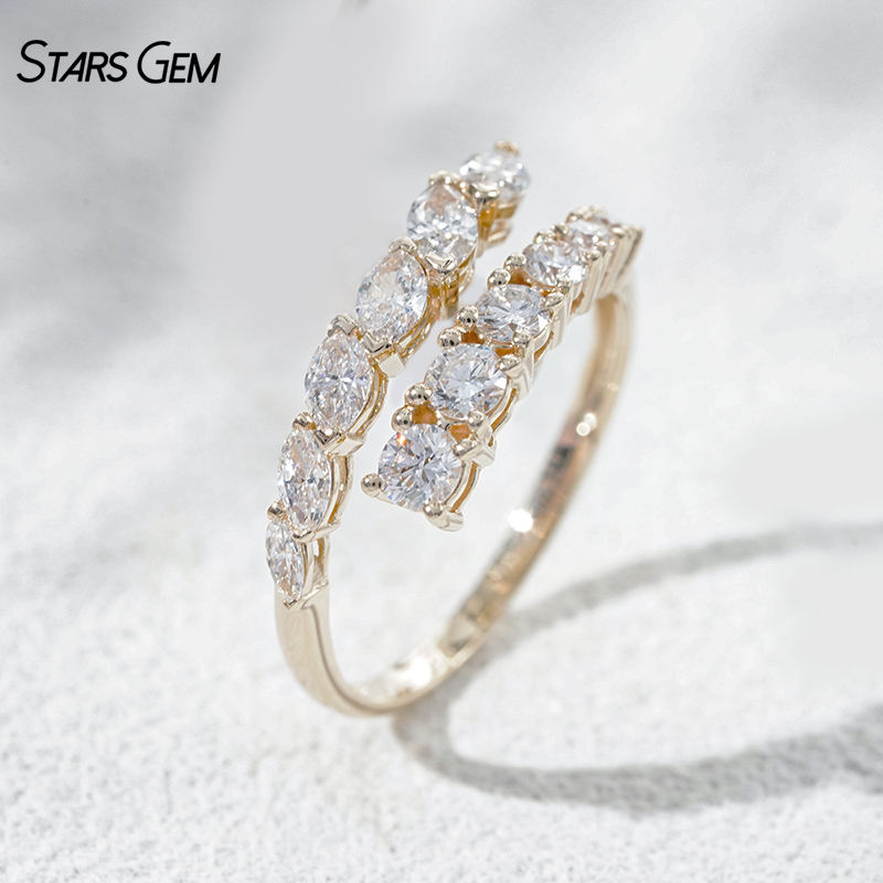 StarsGem Bague Hug ouverte unisexe en or massif 10K plaqué rhodium avec diamant de laboratoire 0,94 carat taille marquise brillant