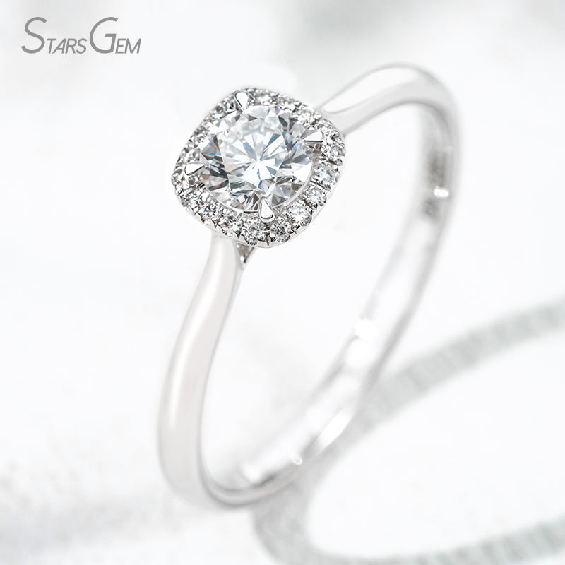 Bague de fiançailles classique Halo en or blanc 18 carats avec diamant de laboratoire rond brillant de 0,39 ct (4,48 mm) de Starsgem, couleur D