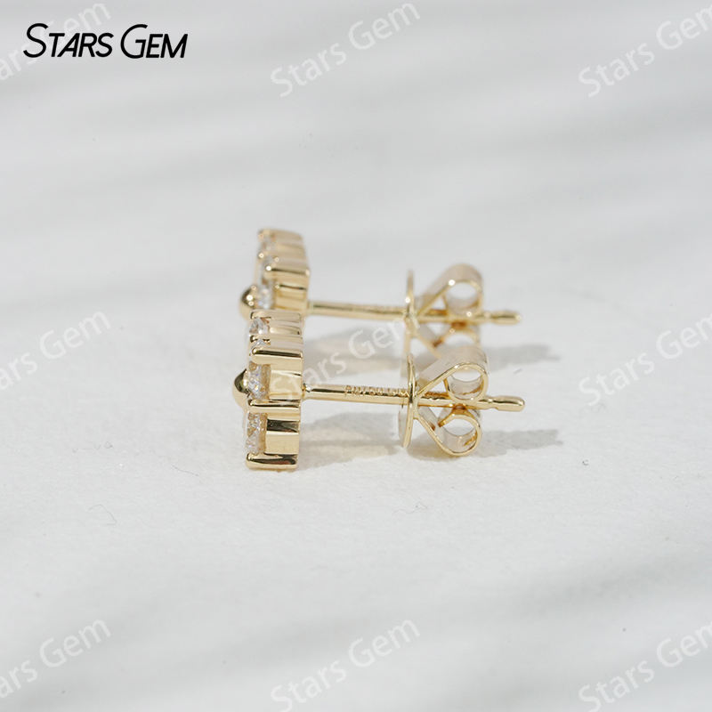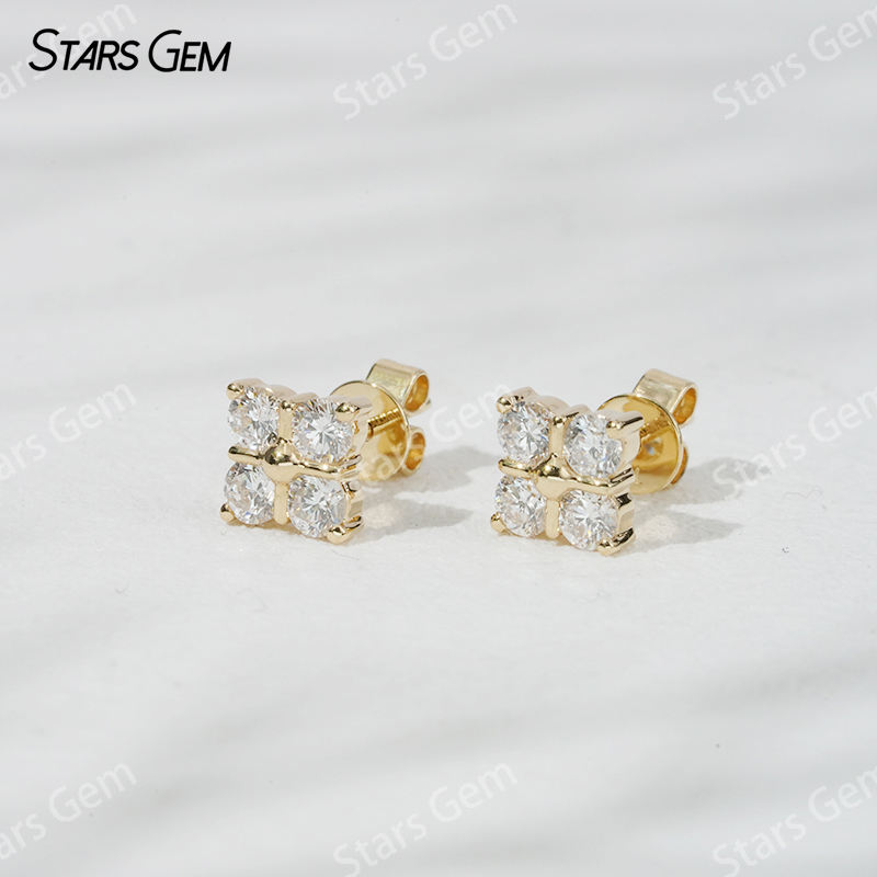 Starsgem 0.7ct 2.9mm Round Brilliant Cut Lab Grown Diamond Boucles d'oreilles unisexe de luxe en or jaune 18 carats