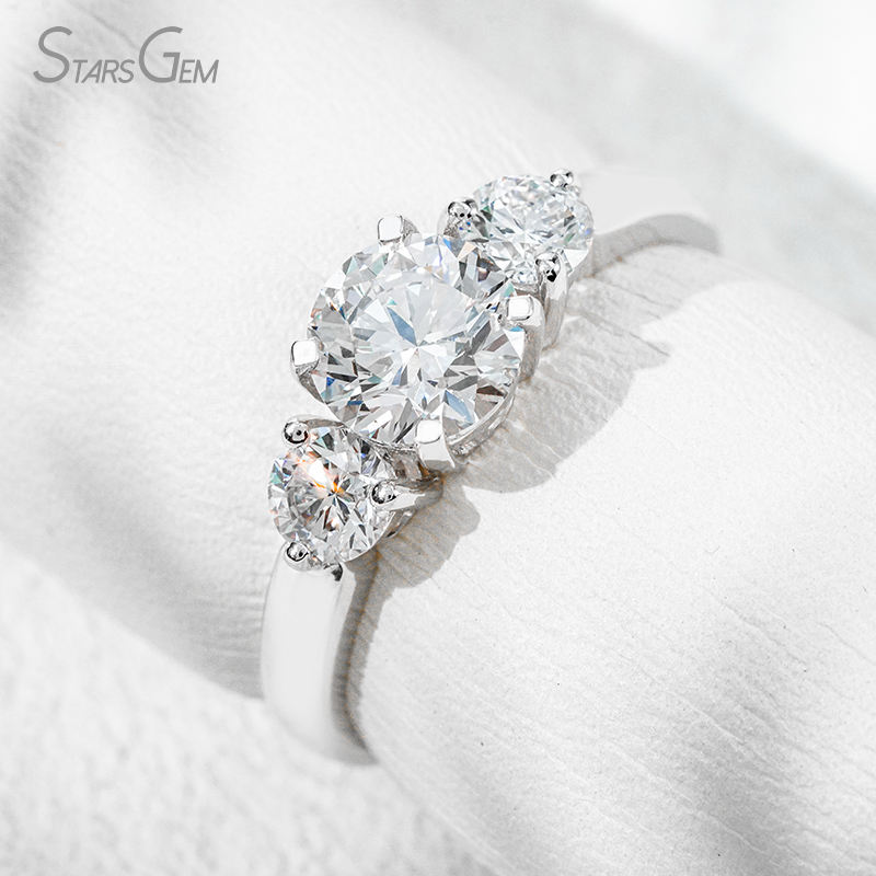 Starsgem 1.47ct 6.36mm Diamant de laboratoire taille brillant couleur D Or blanc 18K Bague de fiançailles classique à trois pierres 3g