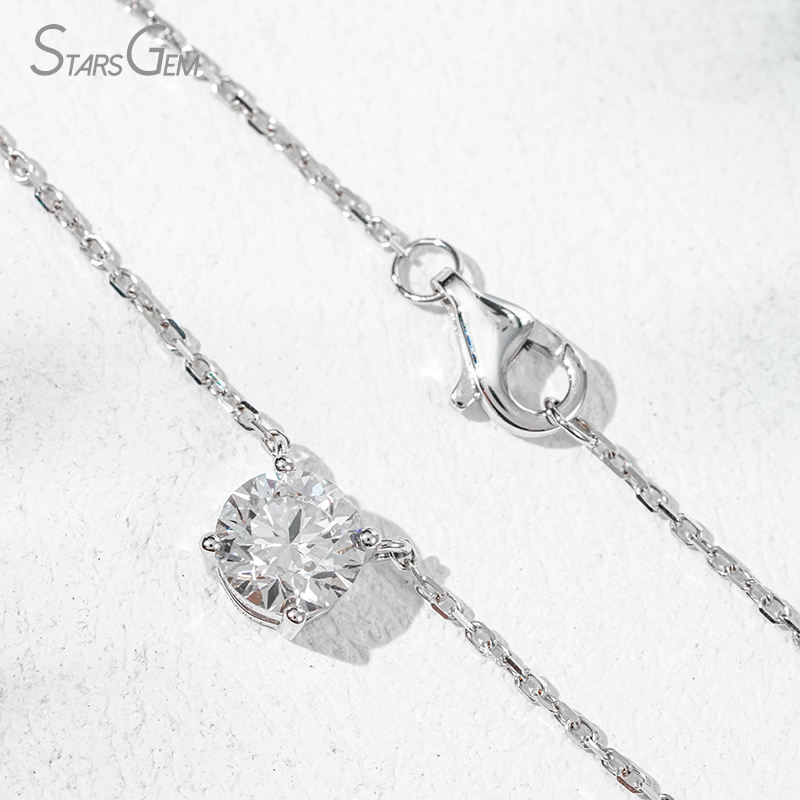 Starsgem 1ct 6.5mm Round Brilliant Cut Lab Grown Diamond 18K White Gold Classic Unisex Pendant Necklace NGTC Certified 2.1g