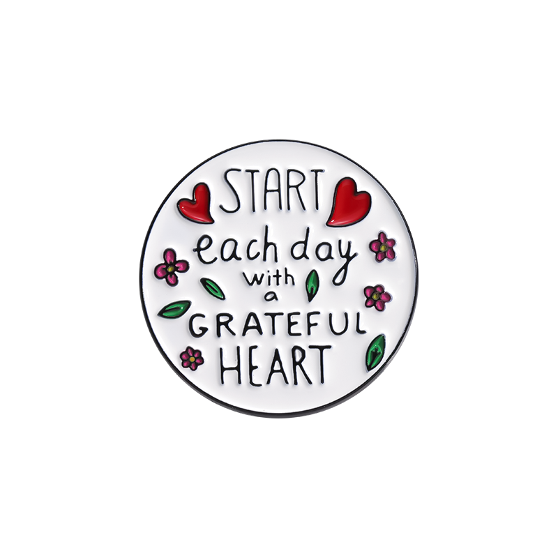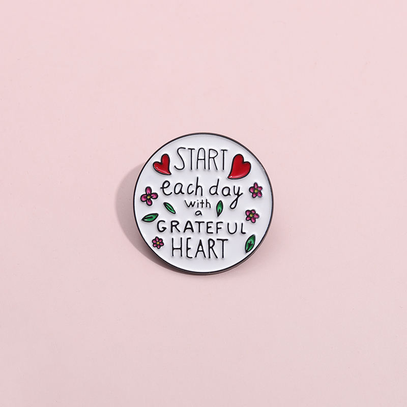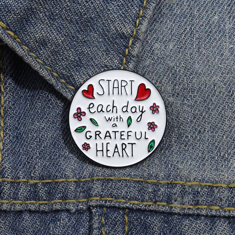 Commencez chaque jour avec un coeur reconnaissant broche émail broches personnalisé inspirant proverbe insigne épinglette bijoux cadeau pour les amis