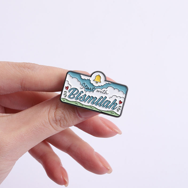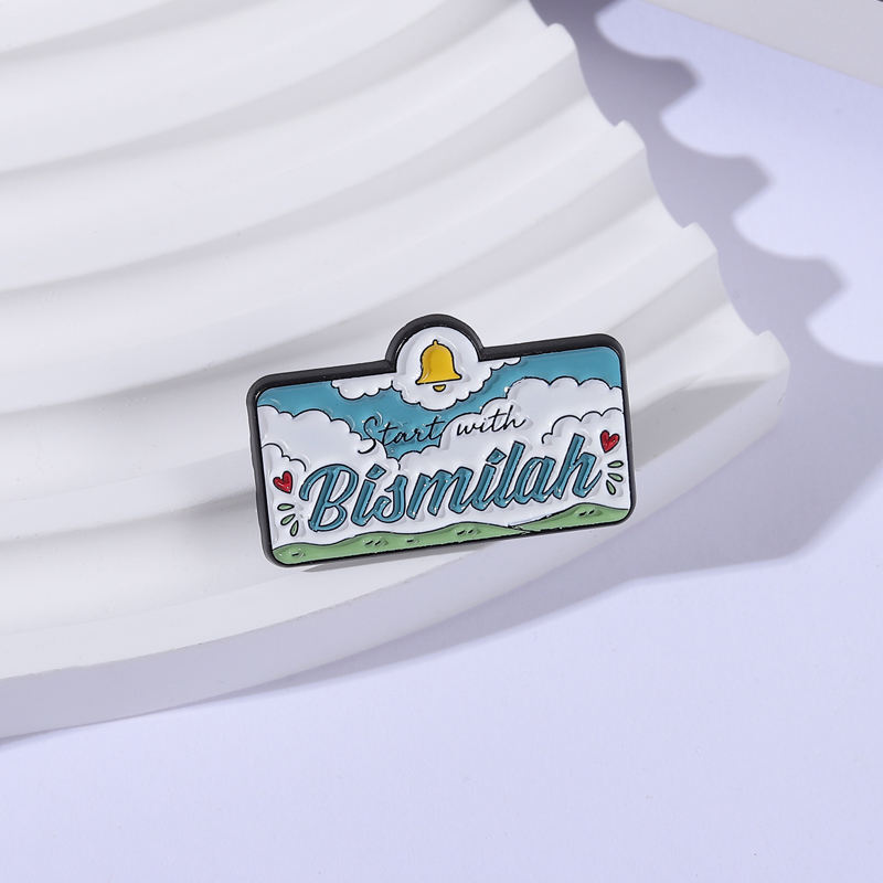 Démarrez par la broche en émail Bismillah, citation coranique islamique musulmane, Iftar, Eid Mubarak, broche religieuse, badge de revers, bijoux, cadeau pour un ami