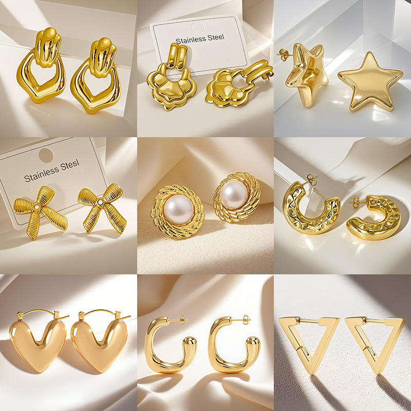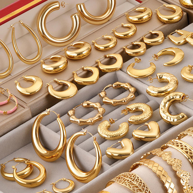 Déclaration Accesorios imperméable à l'eau sans ternissement grosses boucles d'oreilles en or minimaliste en acier inoxydable C boucles d'oreilles pour fille