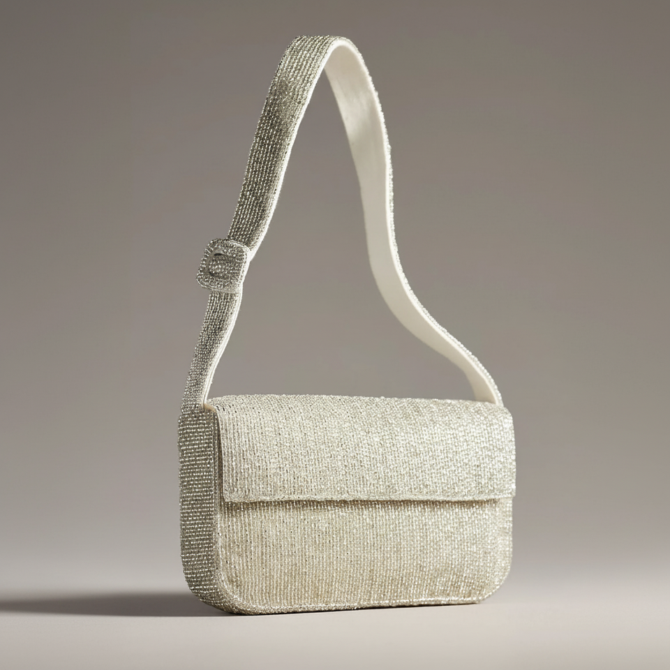 Sac à main carré léger brodé à la main avec perles scintillantes, taille et couleur personnalisables, et logo sur mesure
