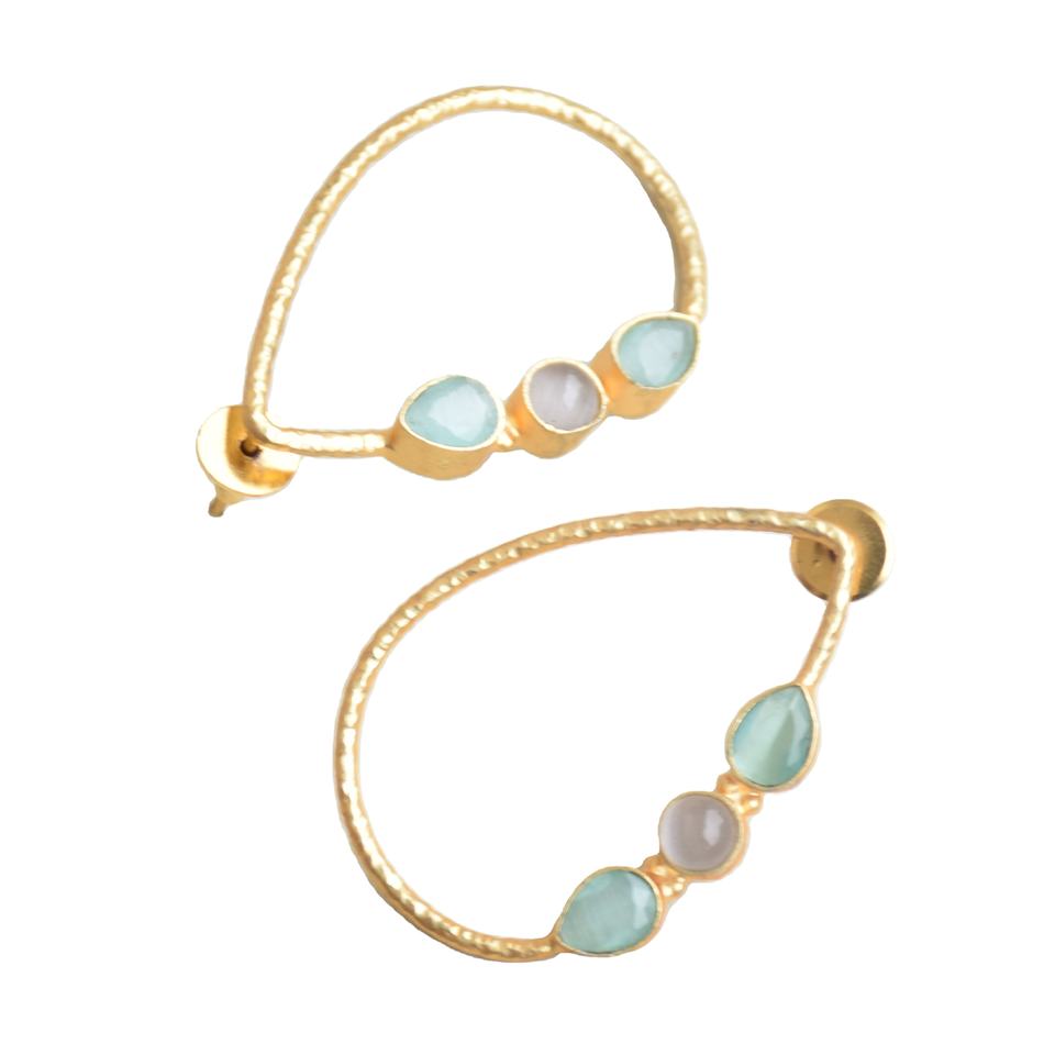 Boucles d'oreilles clous en laiton plaqué rhodium avec pierres précieuses authentiques, motif unique de créateur, vente en gros, export en vrac