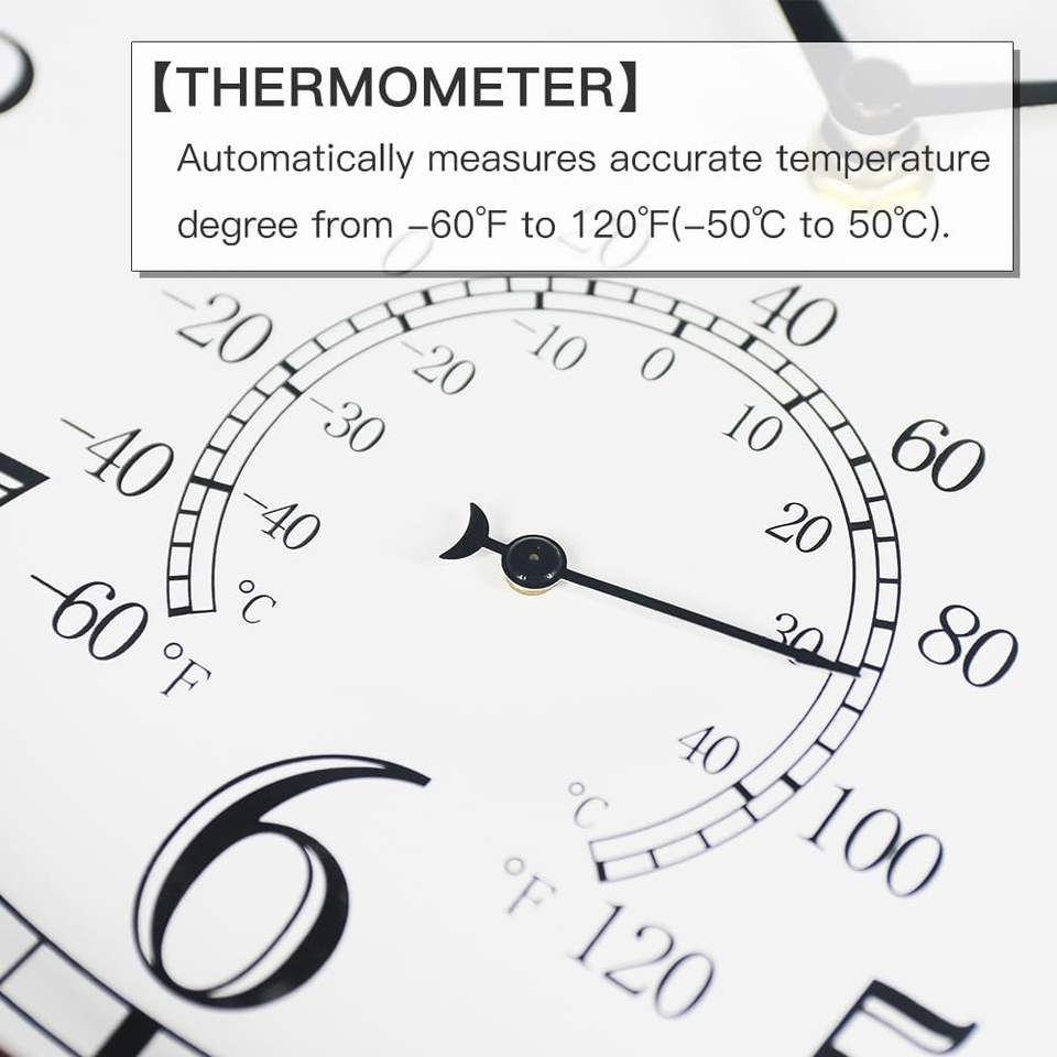 Style antique, Imperméable, Silencieux, Batterie comme Alimentation, Affichage 12 heures, Facile à lire, Hygromètre, Thermomètre, Affichage de la température, Surdimensionné