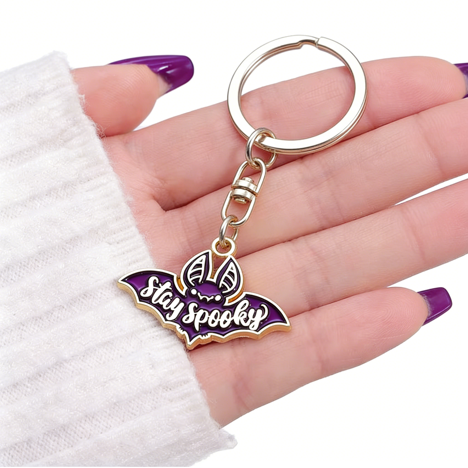 Porte-clés en émail 'Stay Spooky' personnalisé, motif chauve-souris noire, bijou punk gothique sombre, cadeau pour amis