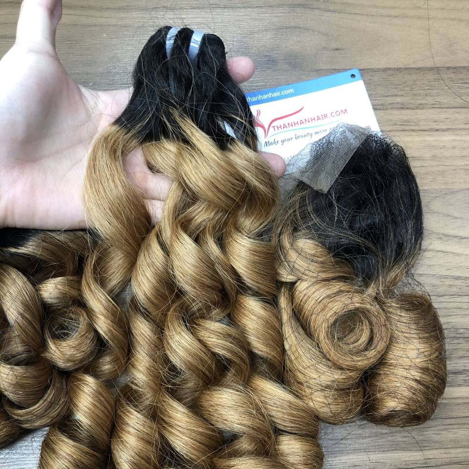 Extensions de Cheveux Humains Vierges Remy Style Luxe Vapeur Bouncy Curl Ombre Couleur Simple Donateur
