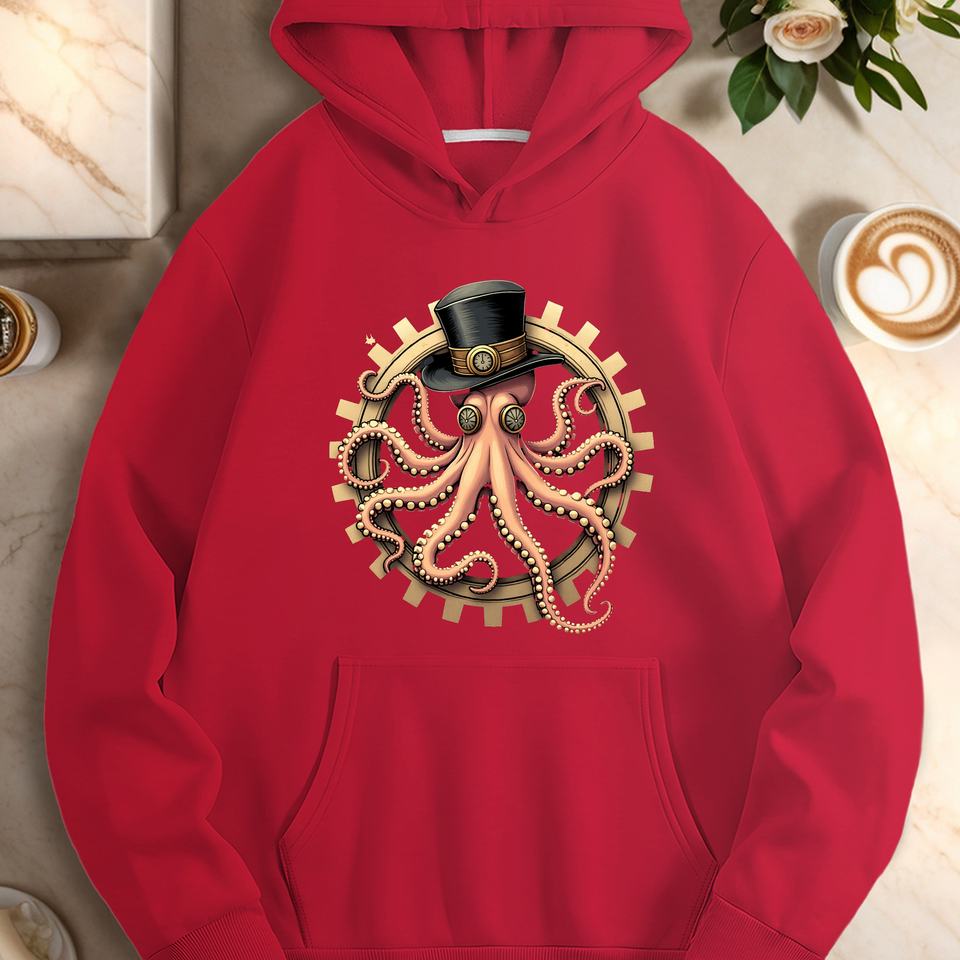Sweat-shirts décontractés à capuche pour femmes en tricot 100% polyester, imprimés par transfert thermique, inspirés du style steampunk, motif pieuvre