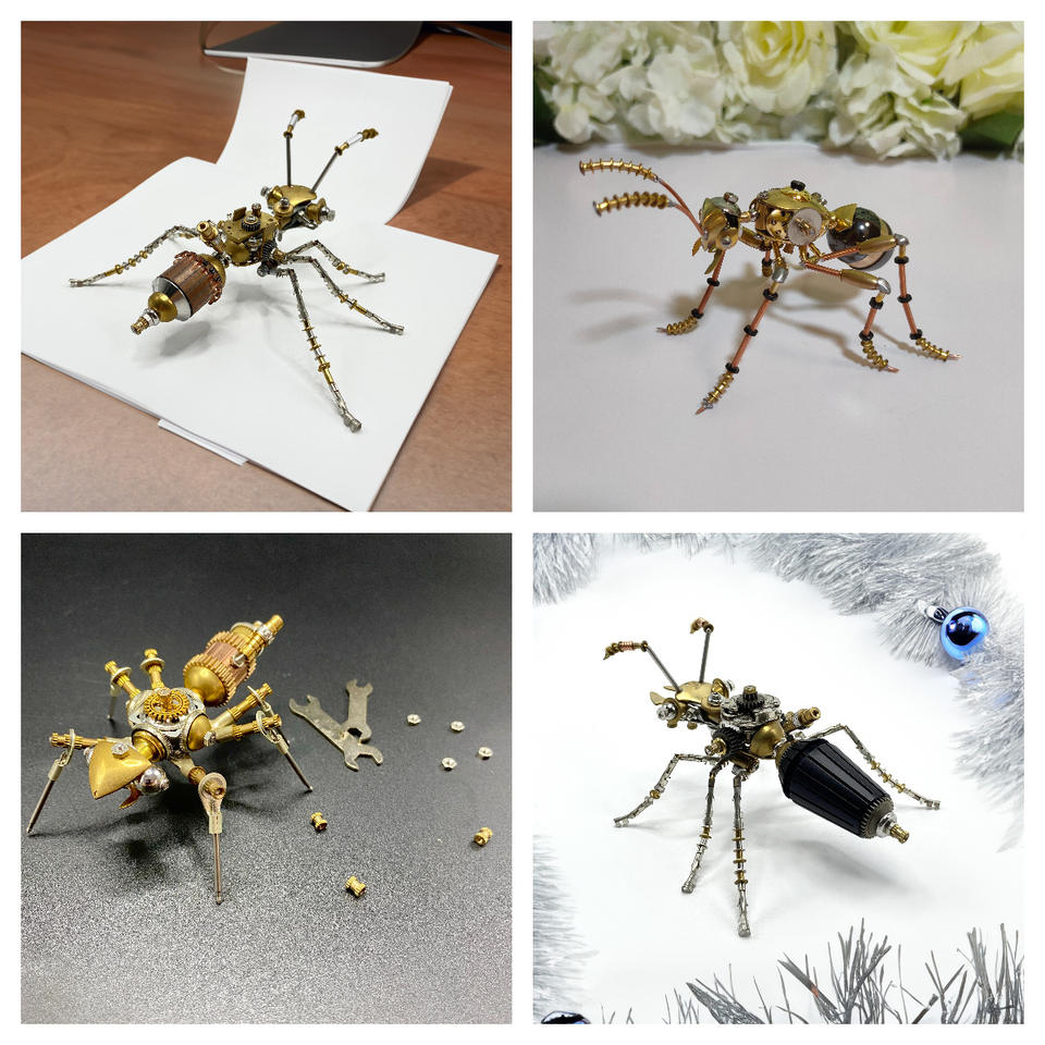Insecte mécanique steampunk, fourmi mécanique en métal, modèle 3D artisanal à assembler, puzzle 3D