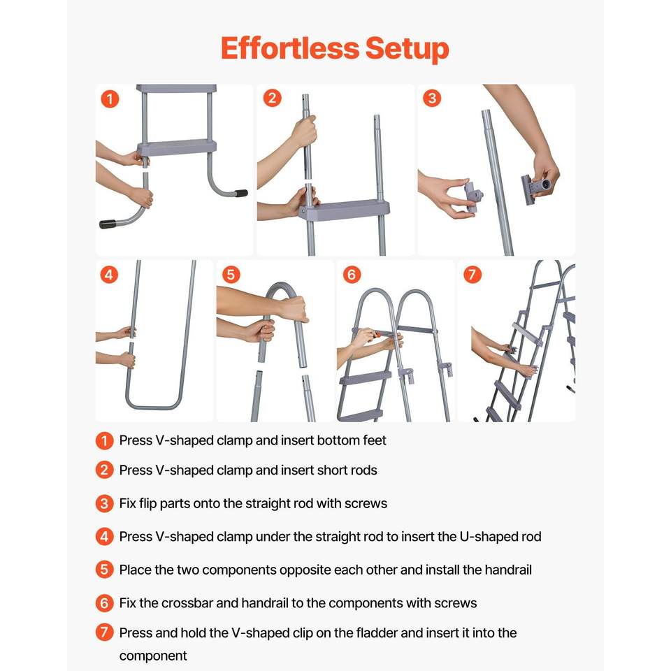 Échelle de piscine en acier en forme de A à 4 marches pour piscine hors sol à paroi haute de 52 pouces, avec capacité de 300 lb, marches d'entrée/sortie