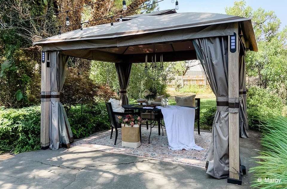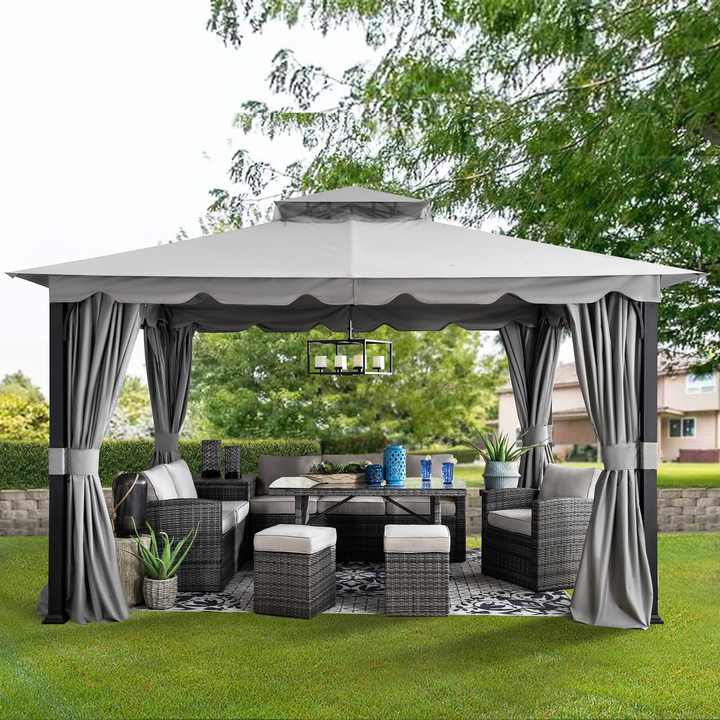 Gazebo en forme d'arc en acier Cadre enduit de poudre durable Assemblage rapide Abri extérieur Moustiquaire de toit étanche pour patio
