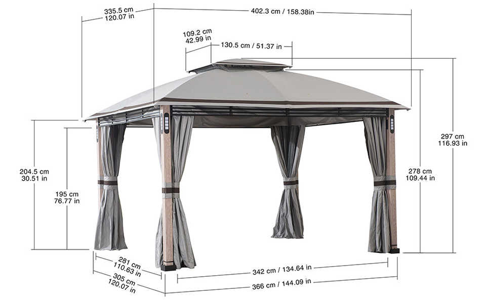 Dimensions:3x3,6x2,9 m(10 'x 12' x 9,5 ')