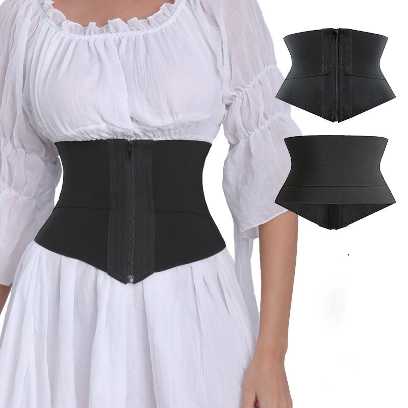Steel Bones Waist Cincher Tummy Wrap Hourglass Slimming Belt Corset Clips Hooks and Zipper Waist Trainer for Women