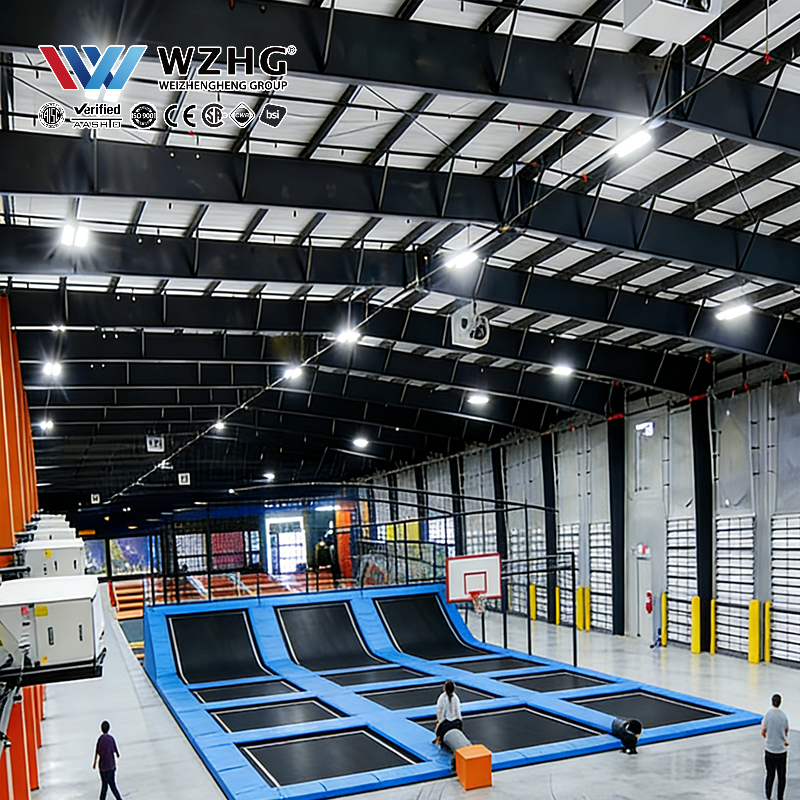 Bâtiment en acier pour centre de trampolines, respectueux de l'environnement, assemblage rapide, structure robuste, fournisseur fiable, spacieux et durable